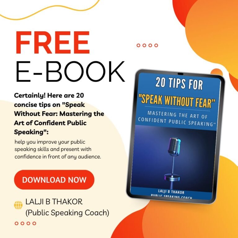 Free E-Book on 20 TIPS FOR “SPEAK WITHOUT FEAR” Mastering the Art of Confident Public Speaking” Download Now